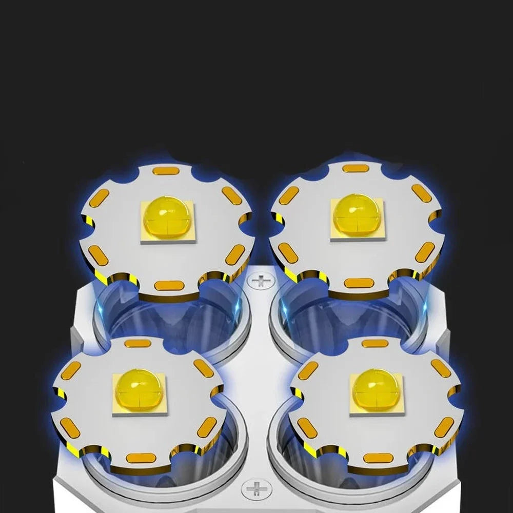Iluminação Poderosa e de Longo Alcance: Lâmpadas LED modelo P1000 oferecem um feixe de luz de 1000 lúmens que alcança até 500 metros.
